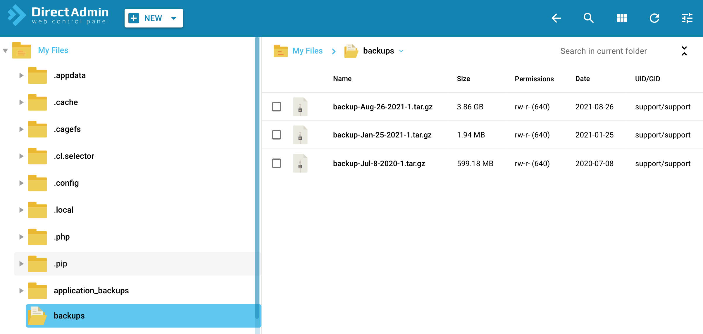 The hosting backup will be available in the 'File Manager'. The archive will be saved in the 'backups' folder.