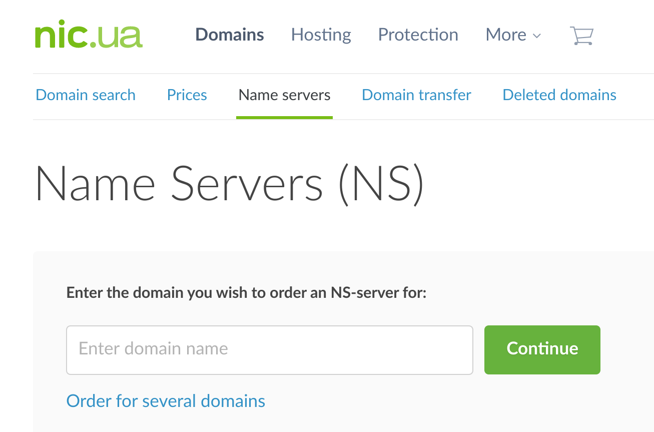- Name servers are provided free of charge for domains served by NIC.UA.