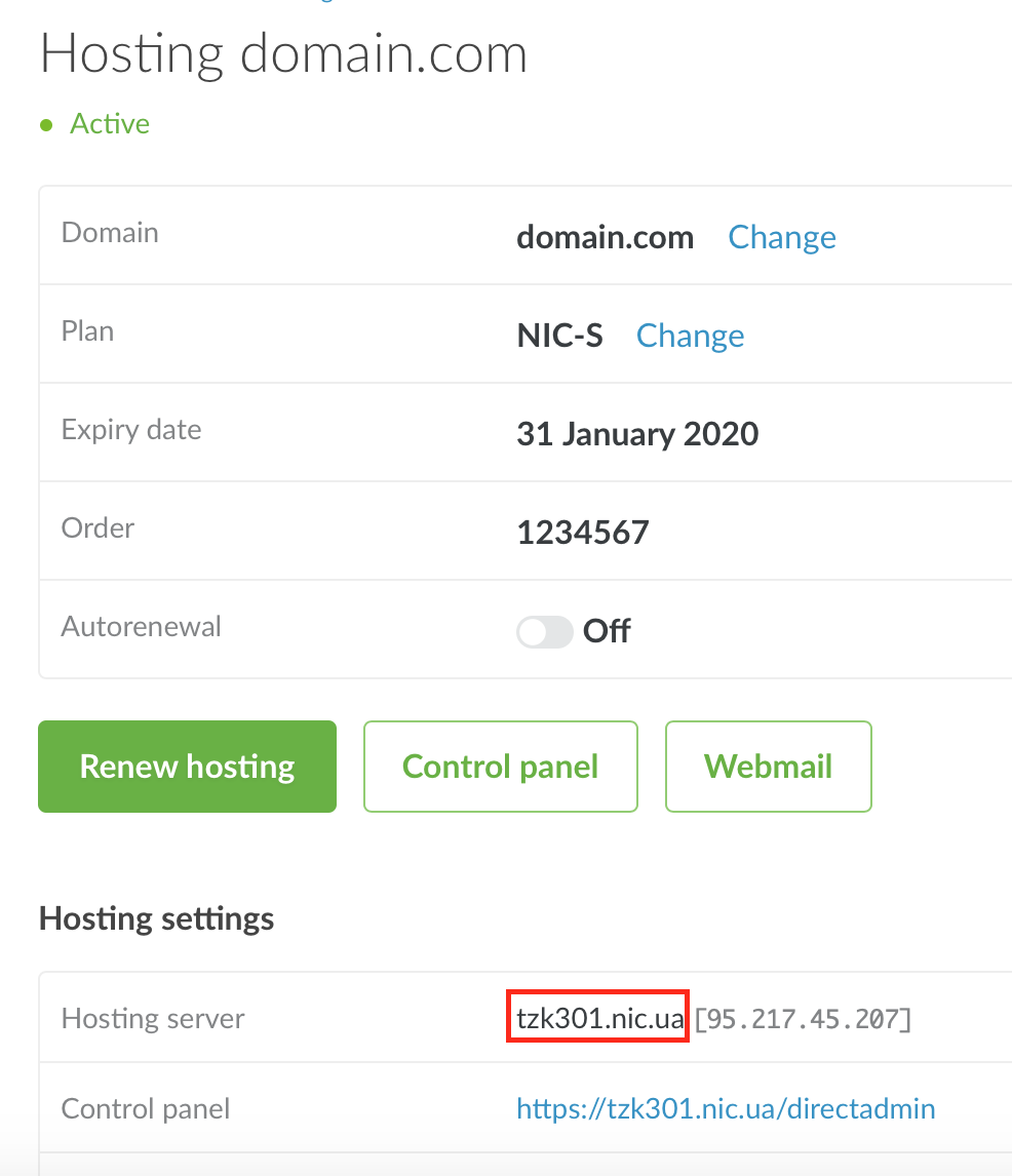 The incoming and outgoing mail server is the same and it is specified in the hosting order properties (gear button to the right of the order).