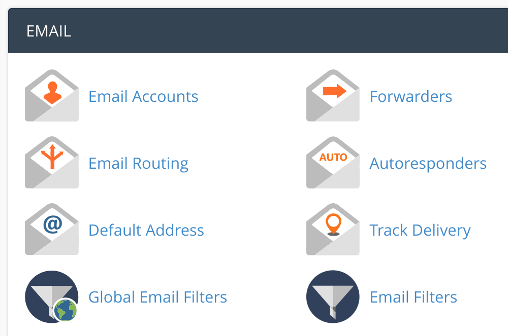 To create an email, open your hosting control panel and find the "Email" section. You will need the item "Email Accounts":