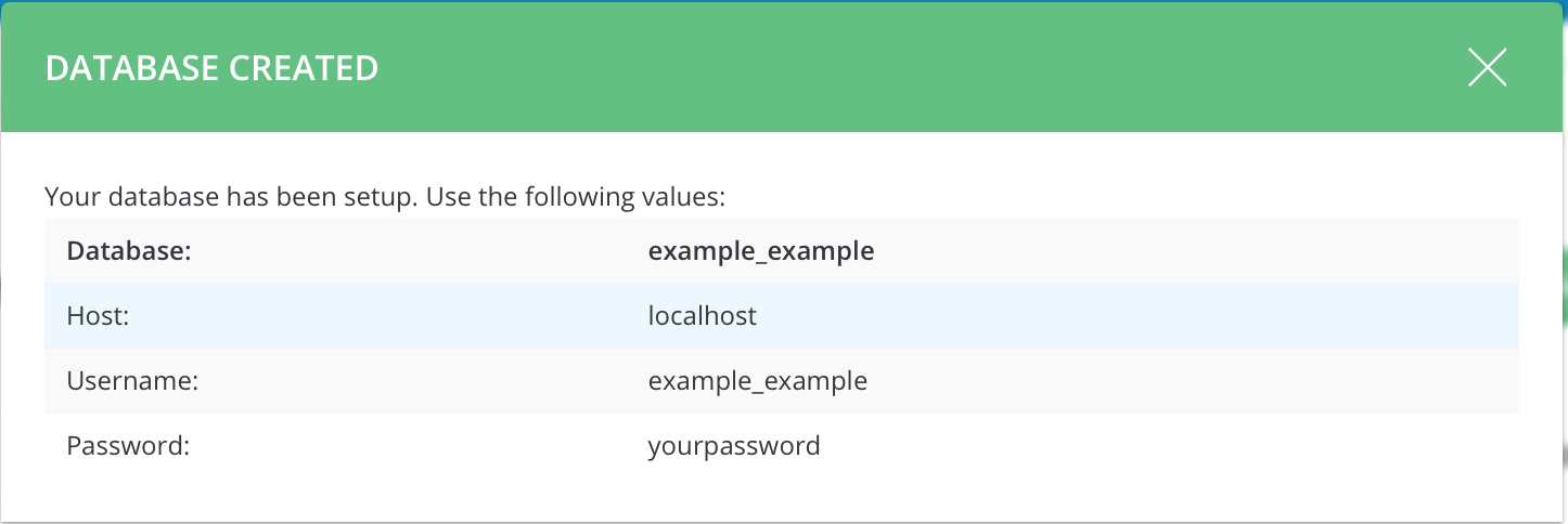 After successful creation of the database, you will receive a notification like this: