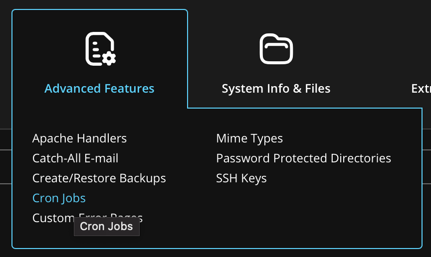 To create a scheduled task, you need to go to the hosting control panel and open the "Advanced features" ➡️ "Cron Jobs" section. And click "Create cron task".