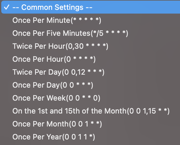 - if you want to run a PHP file, type in the line "/usr/local/bin/php" and then the full path to the file as shown in the 'PHP command examples' field.