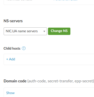 First of all, open domain settings at "Domains" section of your dashboard and change NS-servers from whatever they are now to "NIC.UA name servers" and click on "Change NS":