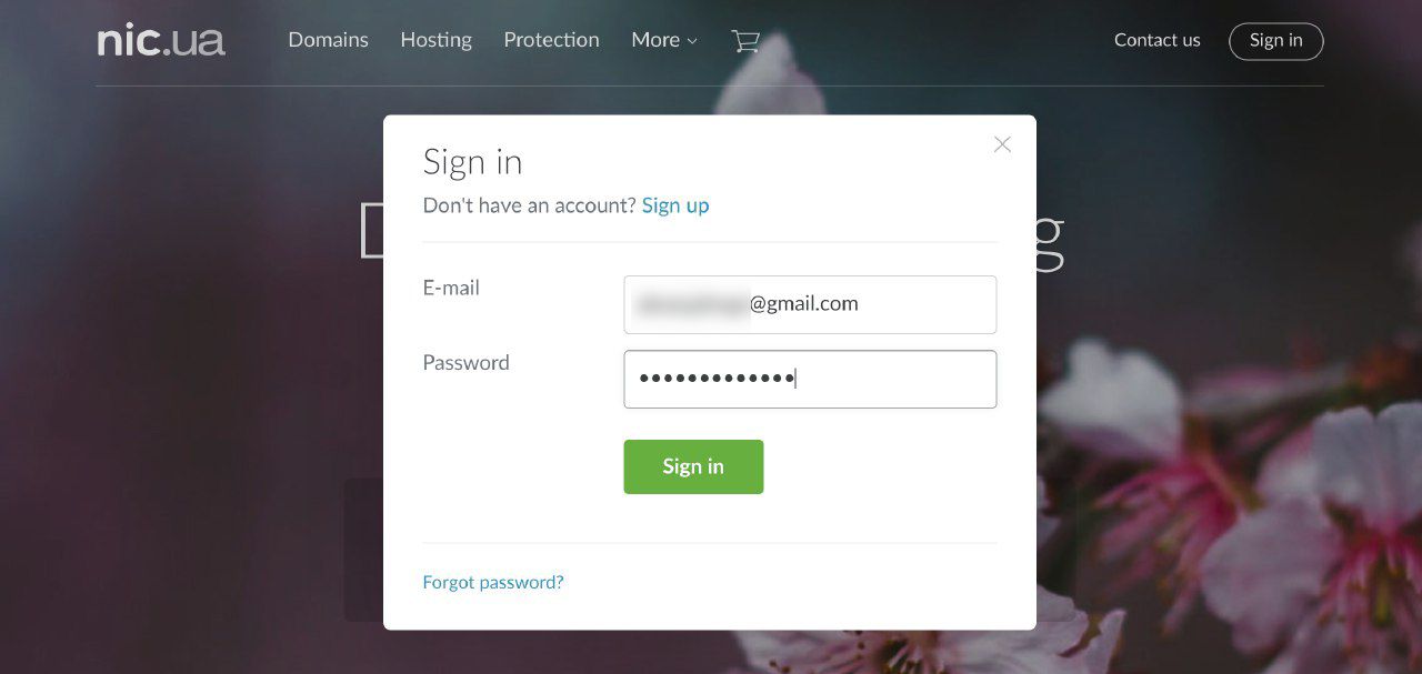 To renew a domain, you need to sign in to your personal NIC.UA account using the username (your email) and password: