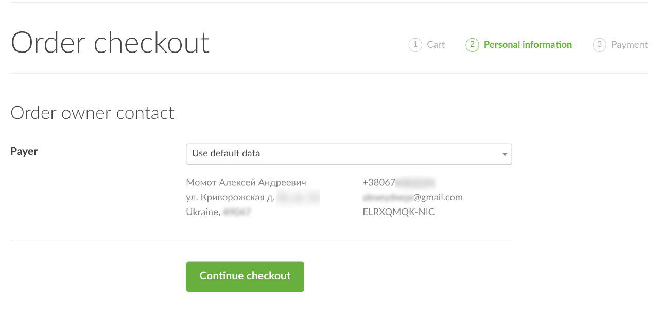 In the second step, you can select a payer; by default, they indicate the owner of the personal account. If you want to specify another person or organization, click on the "Use default data" drop-down list and add a new contact.