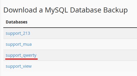Next, find the section titled "Download a MySQL database backup" and click on the name of the database you want to export (download).