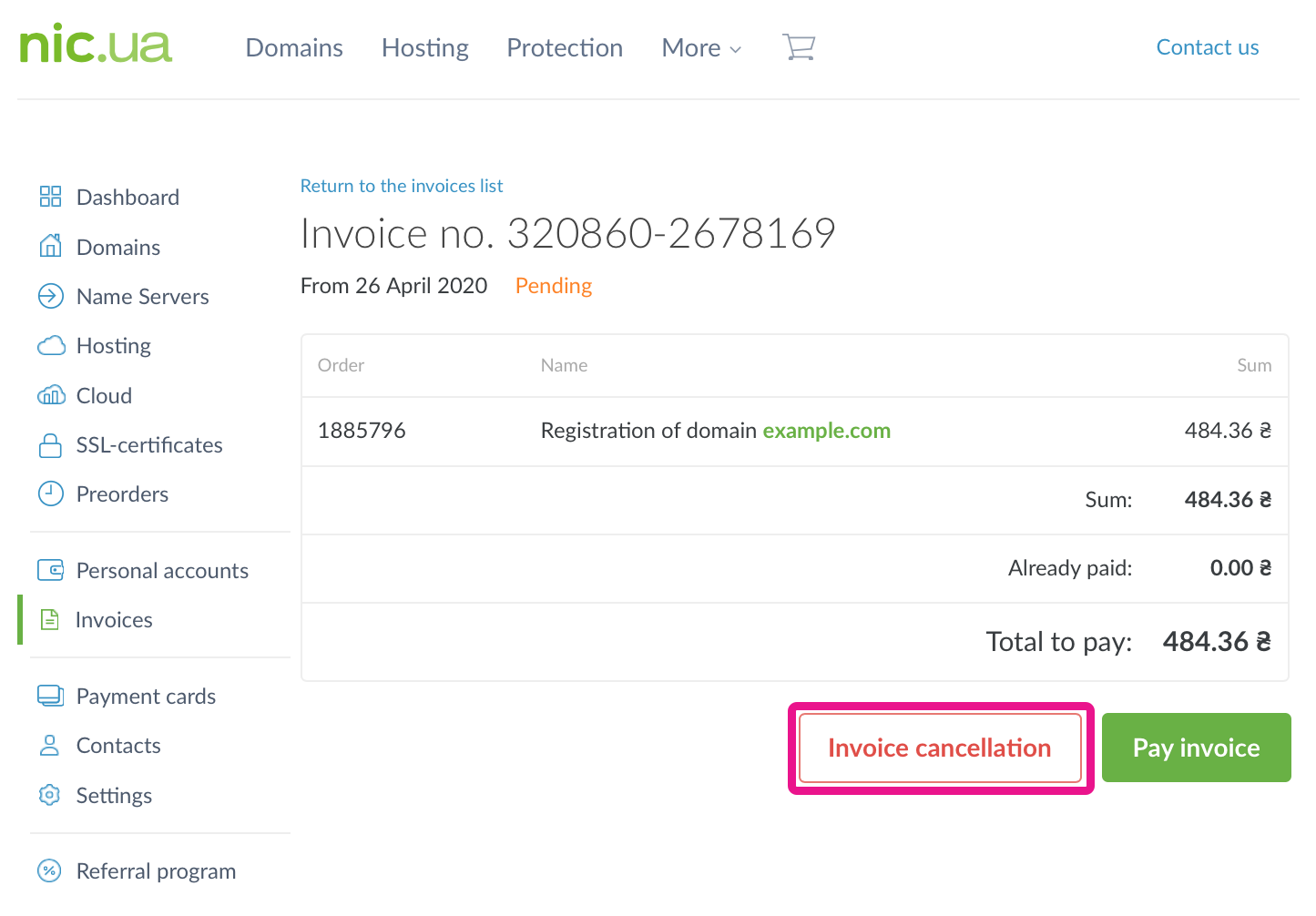 For example, you wanted to order a domain, created an order and reached the payment method selection step. Then you realized that another domain name suits you better, opened the “Domains” section again and ordered that one instead. Or you may have generated several invoices for the same order.