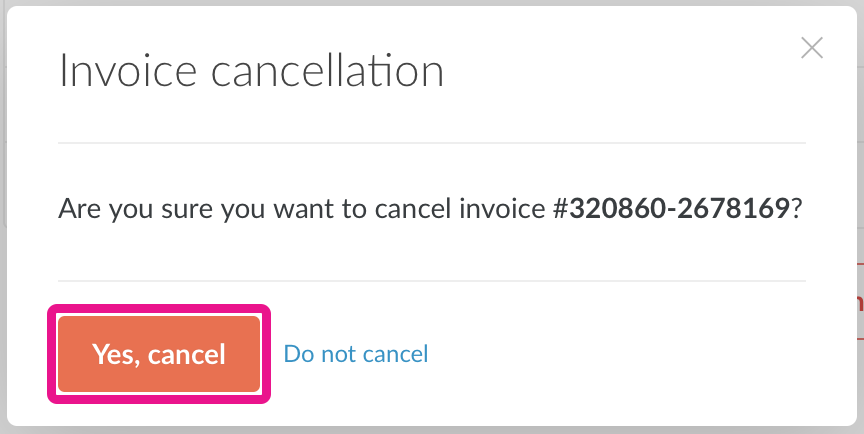 You will see the invoice details: which service is being paid for, the amount due, the amount already paid, as well as the options to cancel or pay the invoice.