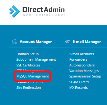 - In the panel itself, find the "Account Manager" section and click on "MySQL Management"
