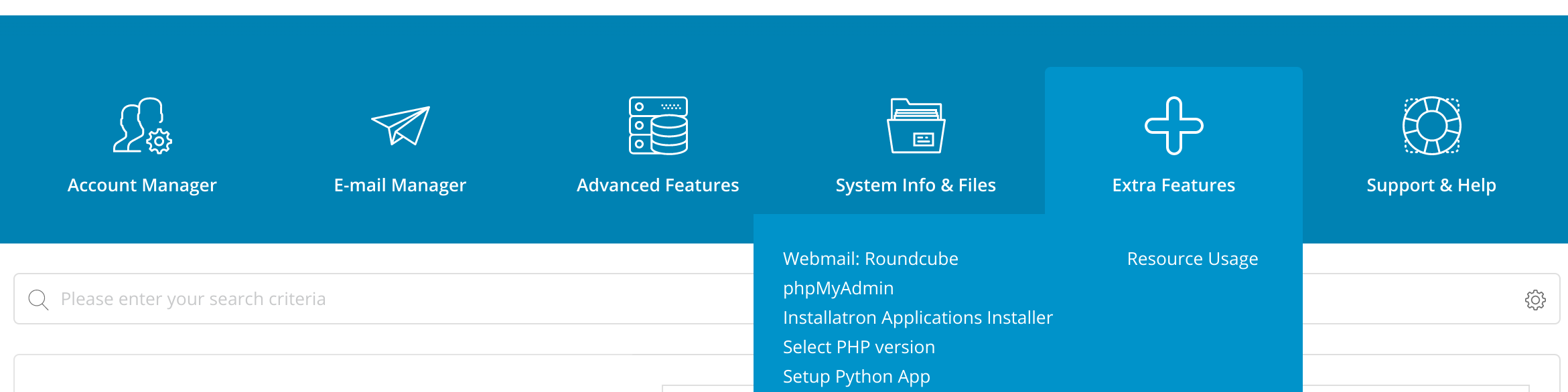 To install CMS using Installatron, first go to the hosting panel (use the login method by entering manually your hosting login and password in the authorization form). Then select "Installatron Applications Installer" in the "Extra Features" section.