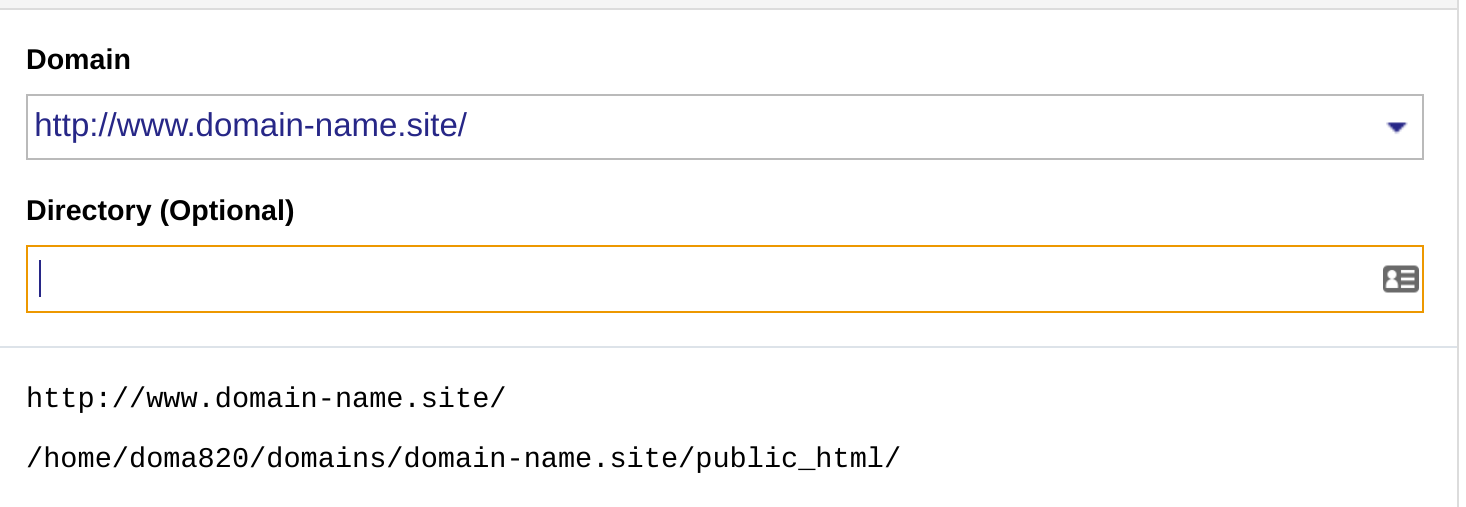 In the form that opens, select the domain for which the CMS will be installed and check the correctness of the path of the root directory (we recommend leaving this field blank).