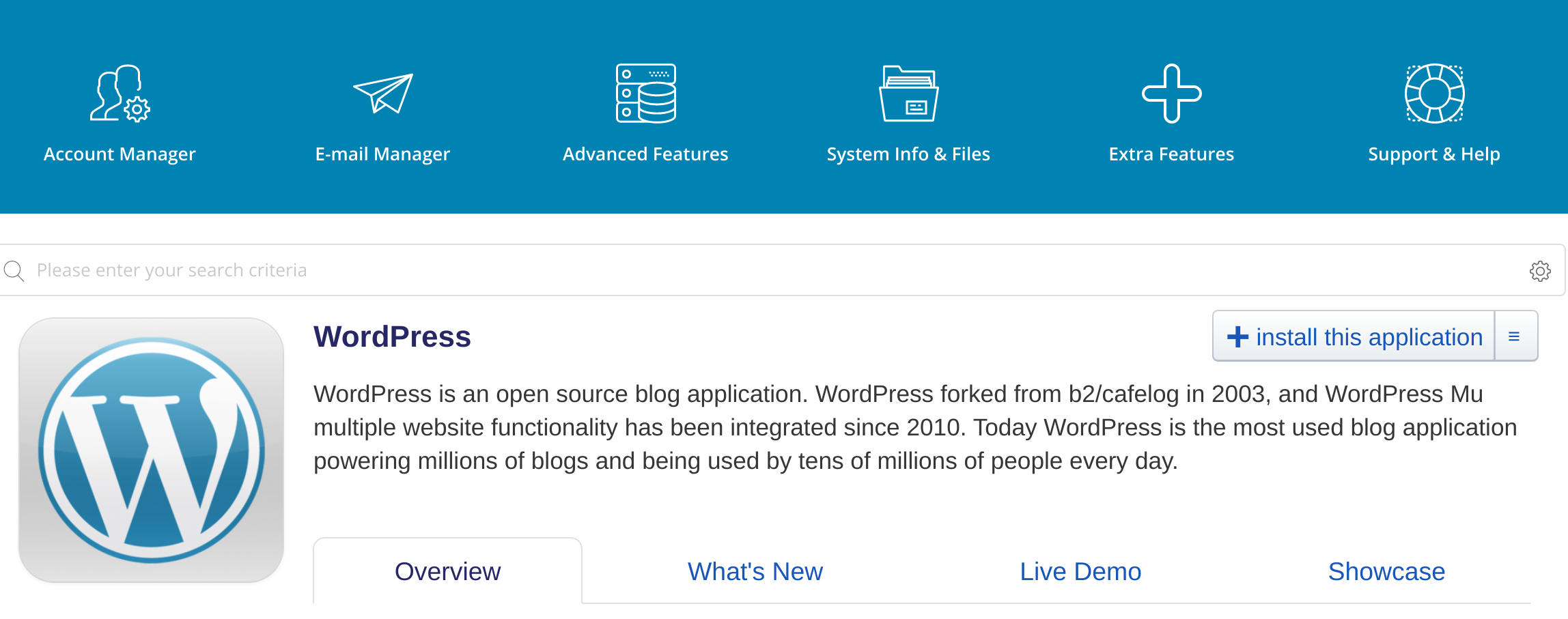 Then, in the "Application Catalog" tab, go to the "Content Management Applications" section and select the desired CMS. This article will walk you through the process of installing a CMS WordPress. Installing other applications can be done in the same way.
