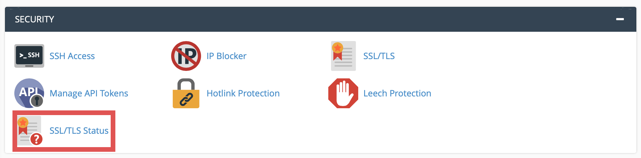 To install a free SSL certificate on your hosting account go to the hosting control panel (cPanel) → "SECURITY" section → SSL / TLS Status