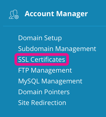 go to the hosting control panel (Direct Admin) → "Account Manager" → SSL Certificates.