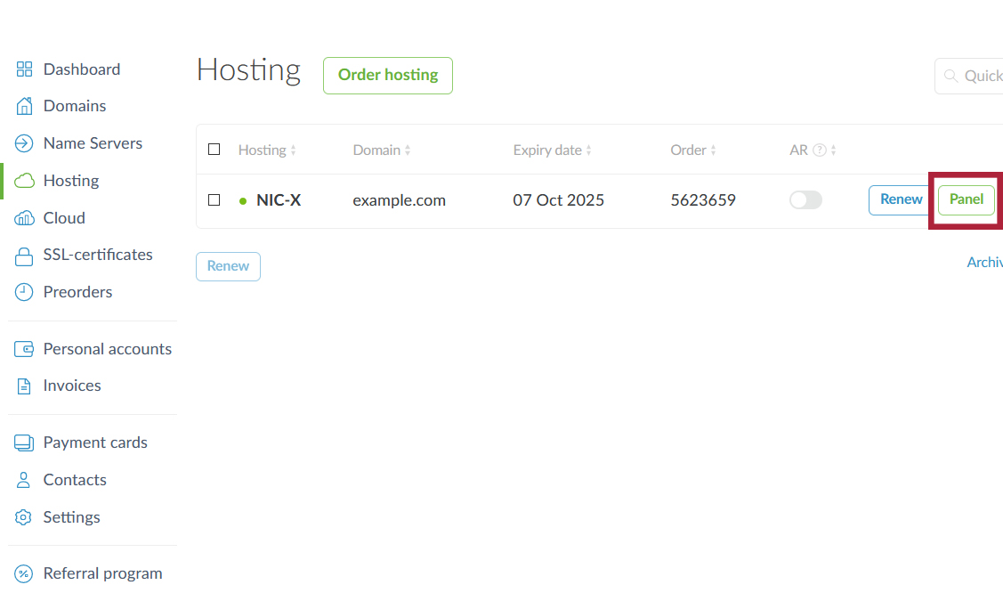 To install the SSL certificate on your hosting from NIC.UA, open the control panel: