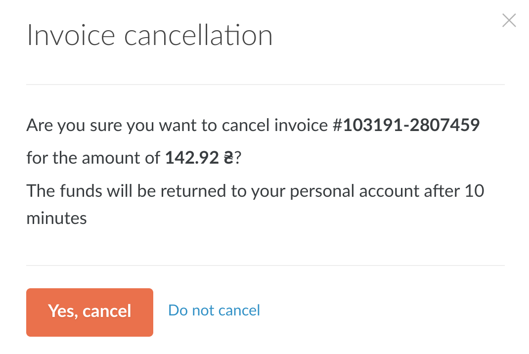 - In the pop-up window please confirm your agreement with the cancellation of the invoice: