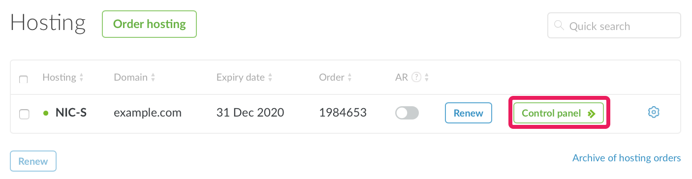 To do this, go to the 'Hosting' section of your dashboard and click on 'Panel' button.
