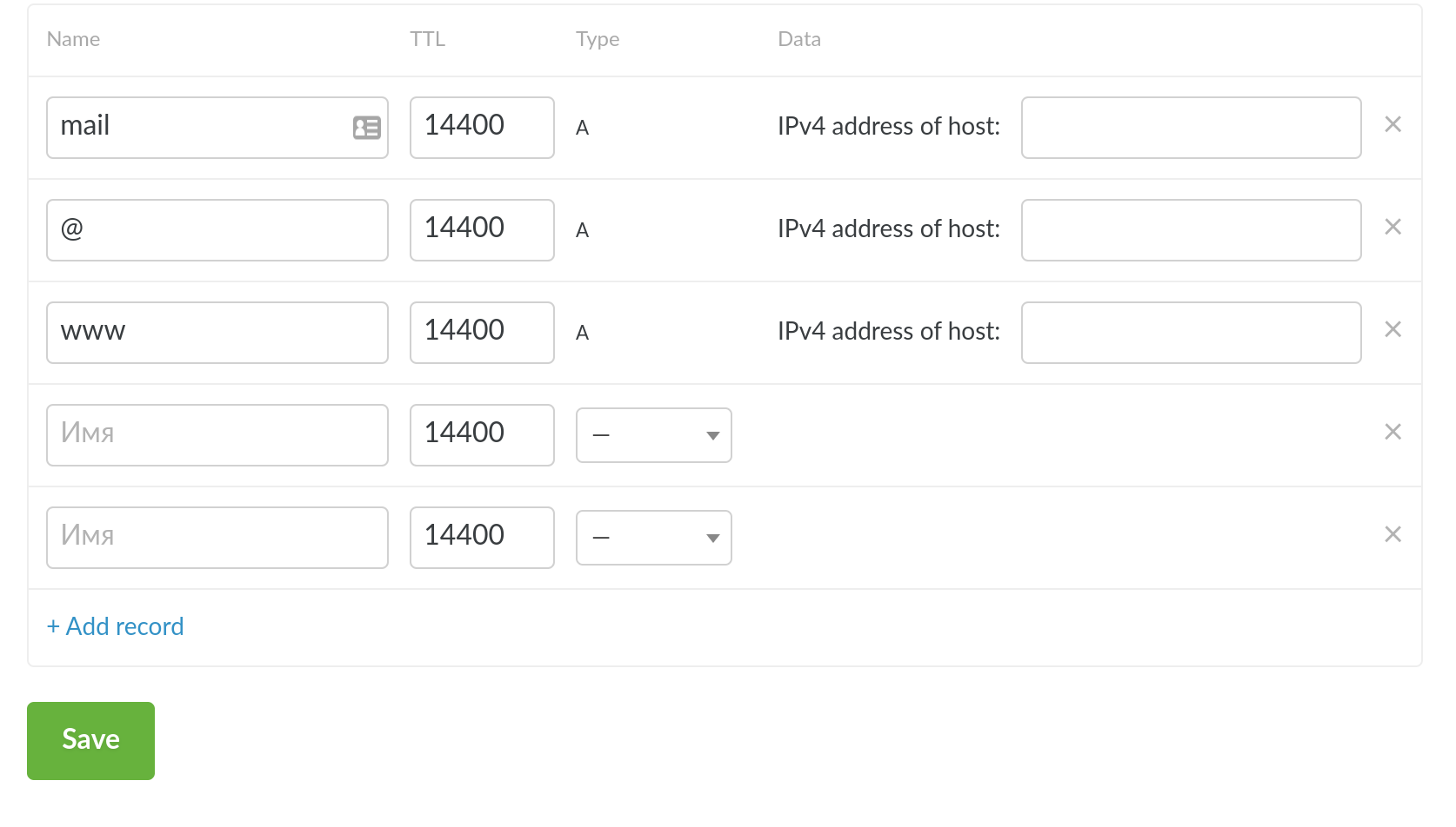 3. There will be opened a menu in which you will need to add several lines of DNS records obtained from your Office 365 account.