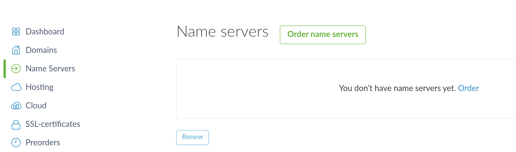 1. If you open the "NS Name Servers" menu item and do not see active orders with the domain we need there: