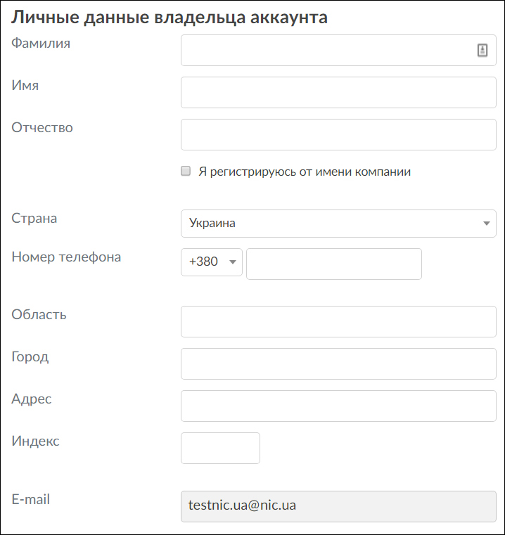 Заполнение данных владельца аккаунта на NIC.UA