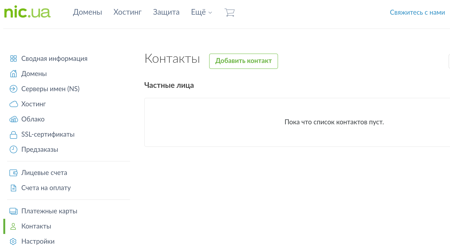 С того момента, как после регистрации владелец NIC.UA аккаунта выбран или домен зарегистрирован с определеным набором данных, поменять их возможно только с помощью службы поддержки. Поэтому, когда вы добавляете новую анкету в меню "Контакты" — это никак не влияет на смену данных у вас в учетной записи NIC.UA либо в уже зарегистрированных доменах.