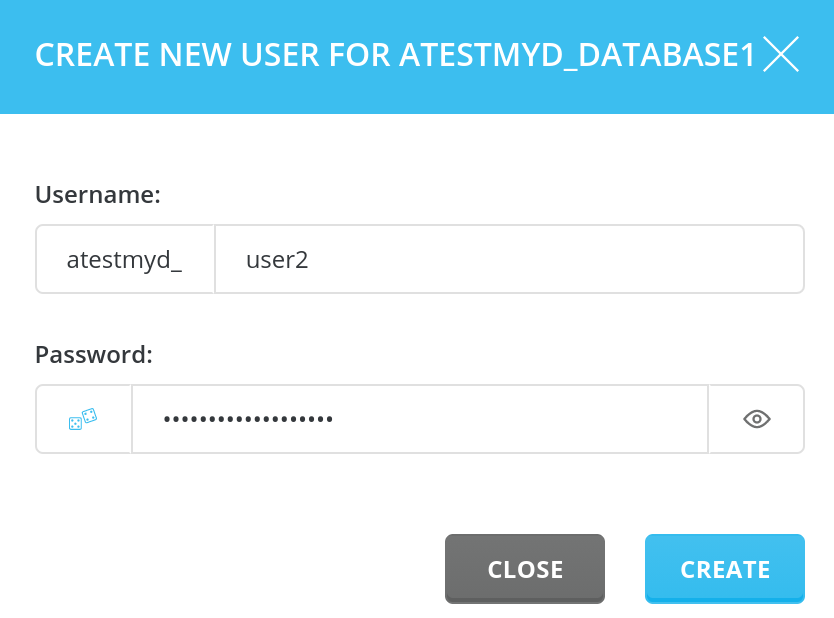 Открывается всплывающее окно, в котором заполняем название нового пользователя и пароль к нему.