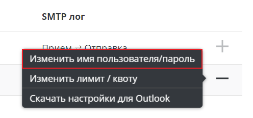 Затем выберите из списка пункт "Изменить имя пользователя/пароль".