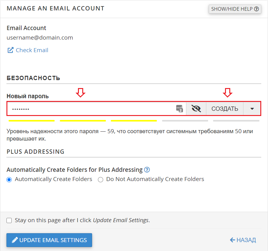 Обратите внимание, что сразу следует обновить пароль во всех почтовых клиентах. В обратном случае почтовый клиент может пробовать подключаться с неправильным паролем, что повлечет ограничение доступа с вашего IP-адреса на 1 час.