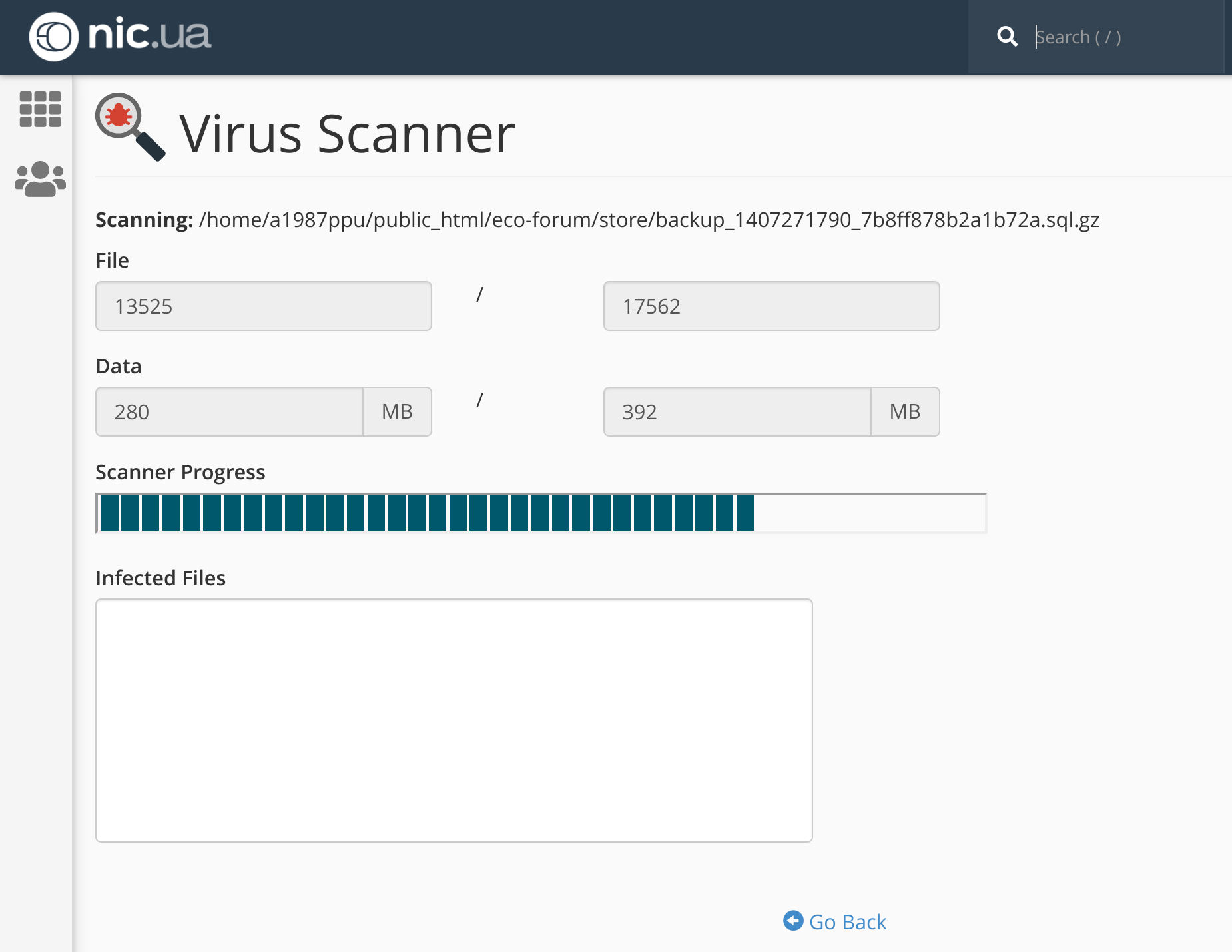 Процесс проверки может занять довольно длительное время, это зависит от объема и количества файлов вашего хостинг аккаунта.