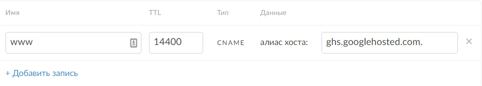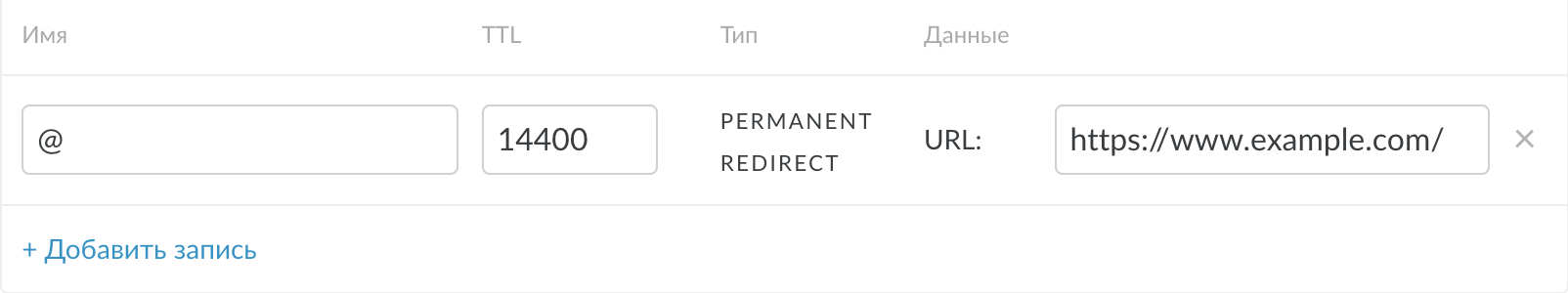 Для приначення власної URL-адреси для сайту, додайте новий запис з такими параметрами: