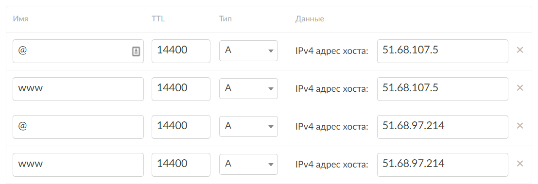 Затем добавьте новые записи с такими IP-адресами: 51.68.107.5 та 51.68.97.214 — как на изображении ниже.