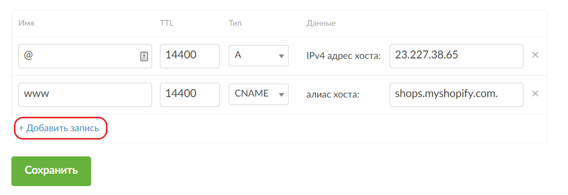 Настройка DNS-записей для сервиса Shopify