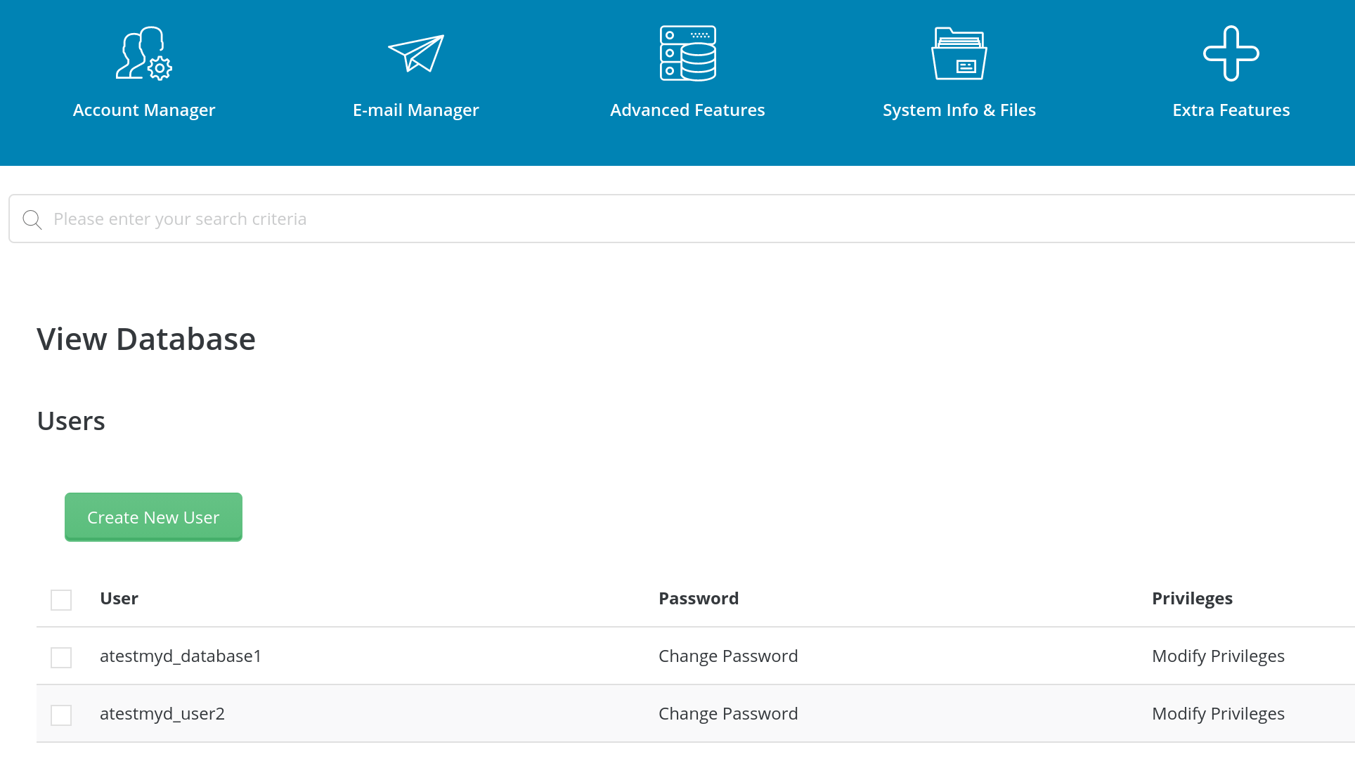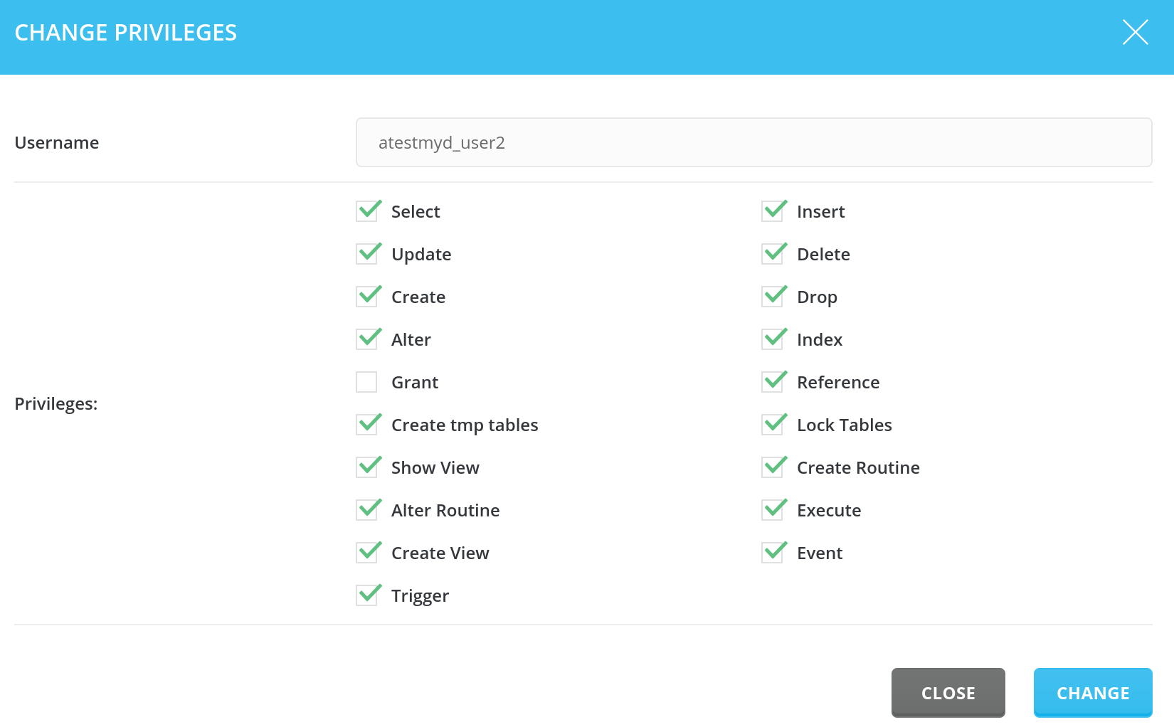 Управление привилегиями и изменение пароля пользователя БД (DirectAdmin)