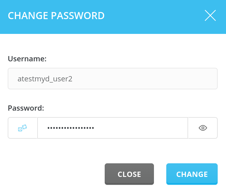 Чтобы поменять пароль для пользователя в графе "Password" нажимаем "Change Password". После ввода новых данных нажимаем кнопку "Change".