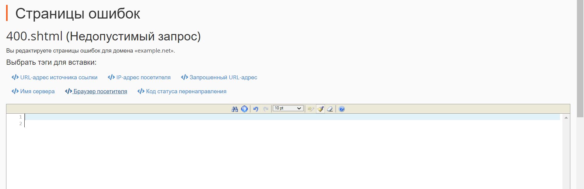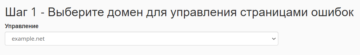 Изначально выберите для какого домена желаете отредактировать шаблон страниц об ошибках.