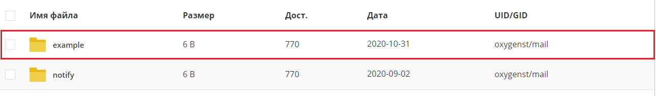 Затем выберите папку с названием учетной записи. Например, если адрес электронной почты example@example.com, то папка будет имет название 'example'.
