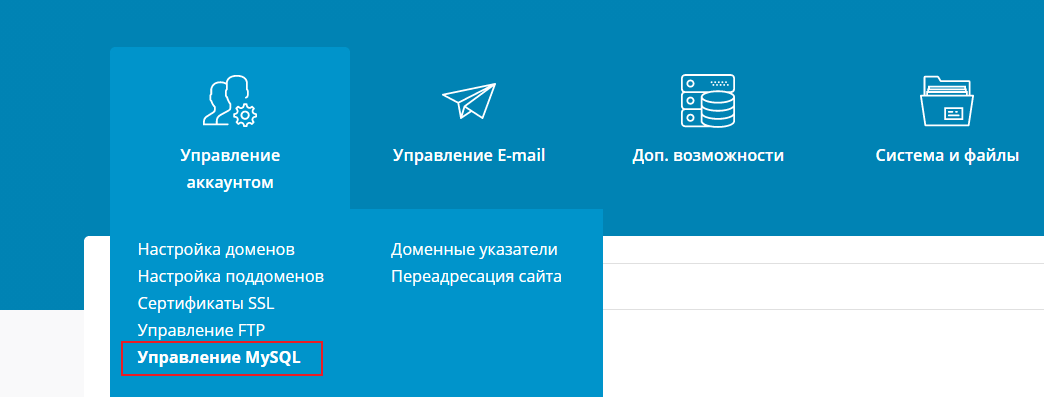 Экспортировать базу данных на хостинге с DirectAdmin достаточно просто (это делается всего в три шага). Сначала перейдите в панель хостинга, где в разделе "Управление аккаунтом" выберите пункт "Управление MySQL".