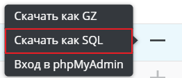 После нажатия кнопки отобразится меню как на изображении ниже. Из трех пунктов выберите "Скачать как SQL".