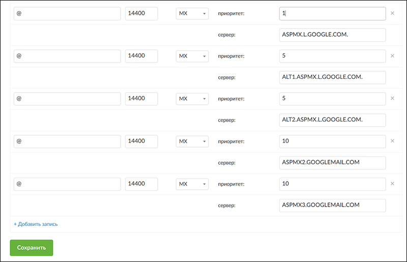 Чтобы добавить эти МХ-записи: