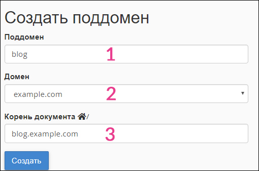 Поддомен — домен, созданный на основе уже имеющегося: например, «blog.example.com». Создать поддомен довольно просто: нужно всего-то прописать новую А-запись на серверах имен.