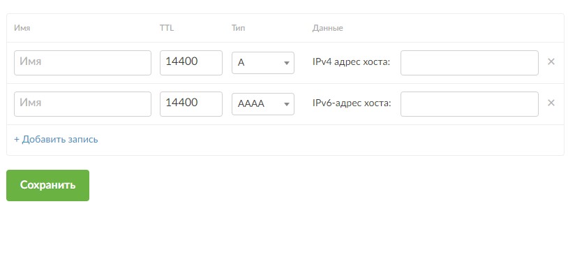 - Тип: здесь вы выбираете тип А (для IPv4) или АААА (для IPv6);