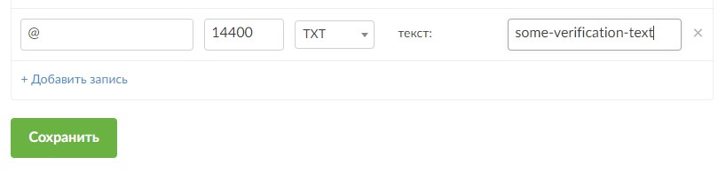 - Имя: для записей проверки владения домена обычно вписывается имя "@";
