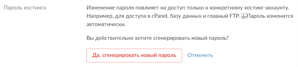 Затем найдите раздел "Параметры хостинга" и нажмите кнопку "Изменить" возле пункта "Пароль хостинга".