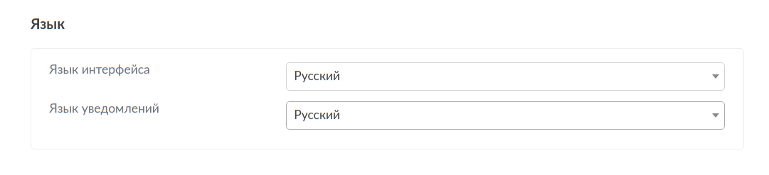 Если желаете изменить язык интерфейса на сайта и/или язык уведомлений, можете это сделать в личном кабинете. Для этого перейдите в раздел "Настройки" — и найдите подраздел с заголовком "Язык".