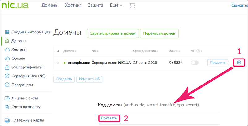 Трансфер домена между аккаунтами NIC.UA