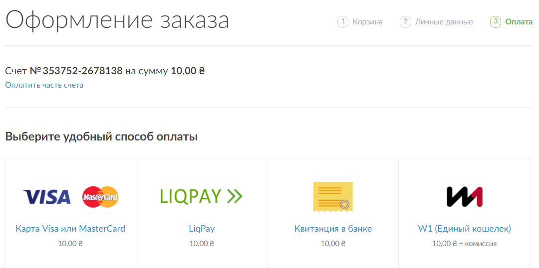 Далее выберите удобный для оплаты способ и оплатите сформированный счет.