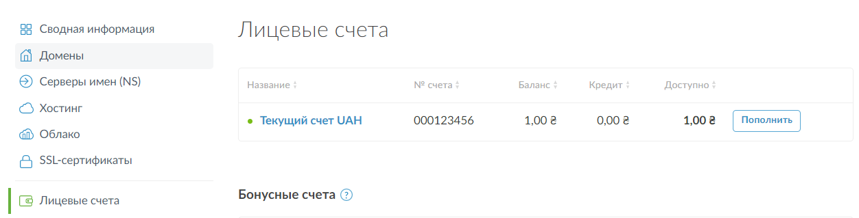 Как пополнить лицевой счет в NIC.UA