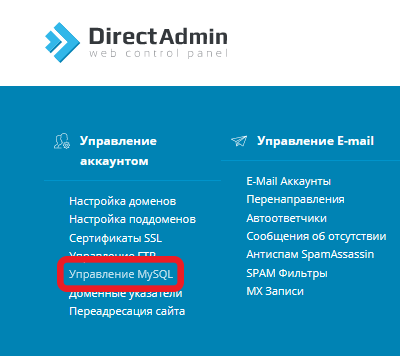 phpMyAdmin является одним из самых популярных и распространенных веб-интерфейсов для работы с базой данных MySQL/MariaDB. Он установлен и в панели хостинга DirectAdmin.