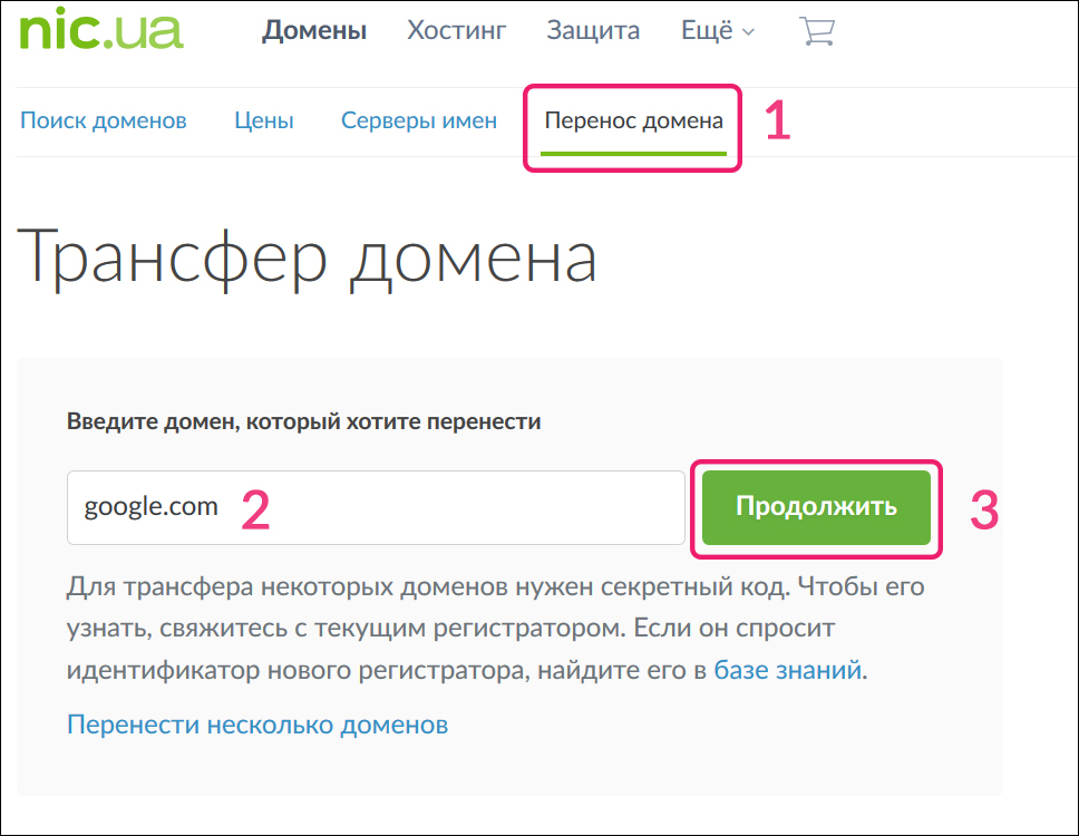 Первым делом для трансфера (переноса) домена на NIC.UA вам нужно будет обратиться к компании, которая обслуживает ваш домен сейчас, и запросить у неё: